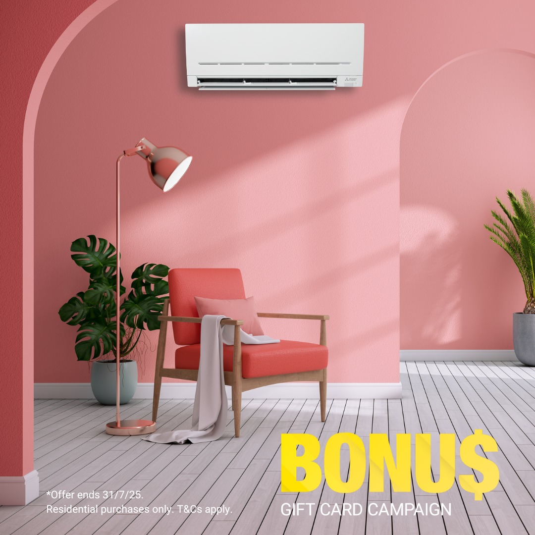 Stay cozy this winter and get rewarded! Purchase and install an eligible Mitsubishi Electric split or ducted air conditioning system and receive a BONUS Gift Card! Residential purchases only, must be installed by 31 July 2025, claim by 31 August 2025, T&Cs apply. Contact us today to find the perfect system for your home.